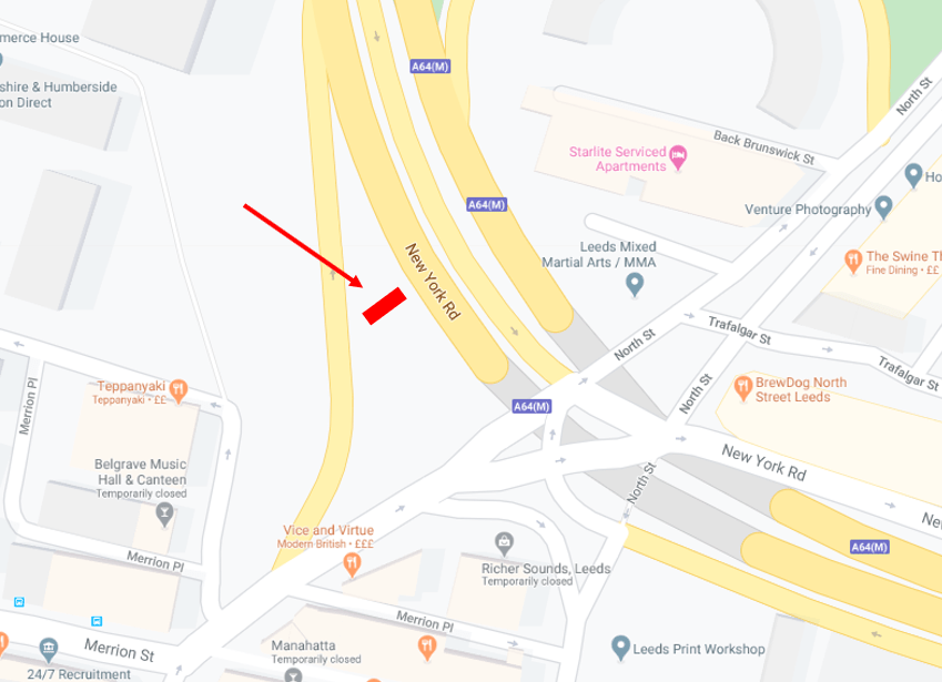 It seems unfair to consider that because the location is on a road, it is fine to display irrelevant images to Leeds citizens. Driving in rush hour, to or from work is already stressful enough, and Leeds citizens should have the right to a ride as peaceful as possible. Because of the lockdown due to the COVID pandemic, it is recommended that we do not leave our homes. However, from Google images, it seems like the billboard would be visible by pedestrians on the bridge as well. Therefore, the above argument can also be made for pedestrians.