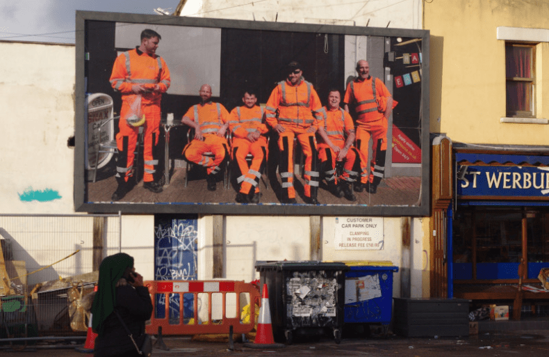 In St Werburghs, a neighbourhood of East Bristol, the Burg Arts project is a community billboard that features art pieces from local artists. The billboard had not been used commercially for several years, so the local community decided to put up photos, children’s paintings or messages from residents. The picture below shows how photo-journalist Colin Moody used the billboard to thank Bristol Waste workers for the job they do.