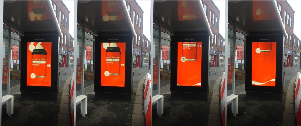 It is possible to report breaches of planning regulations to the Leeds city council. We have done that a few times, in particular for billboards that do not have planning permission (more about that in a future post). So if you find an ad similar to the one shown here, please take a video of the breach and record the location of the bus stop, as accurately as possible. Then you can